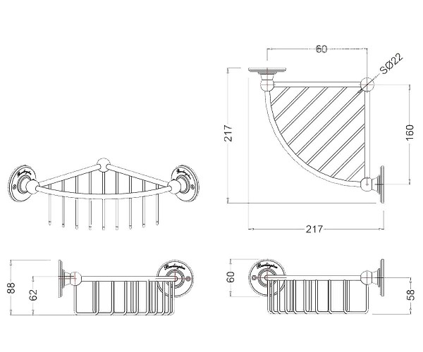 Кутова полиця - решітка Burlington A22 GOL від англійського виробника стане прекрасним і практичним доповненням ванної кімнати. Золотий відтінок впишеться в будь-який дизайн і колірну гаму приміщення. Кріплення до стіни дуже міцні і якісні, як і сама полку.