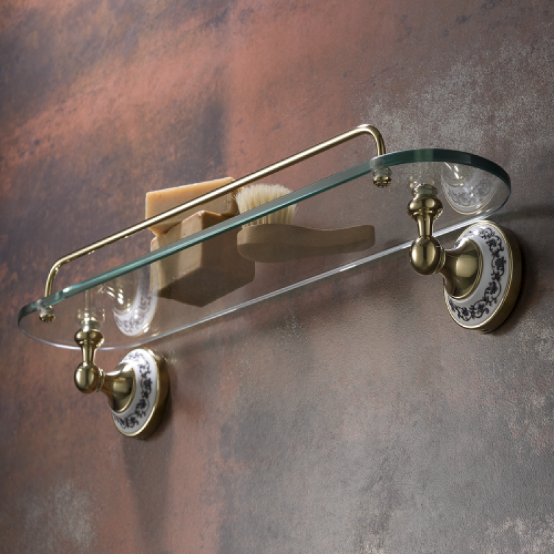 Полочка для ванної Kraus Apollo скляна з бортиком золото