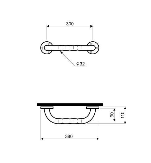 1) Поручень для ванної Kolo Lehnen Funktion 300 мм прямий матова поверхня