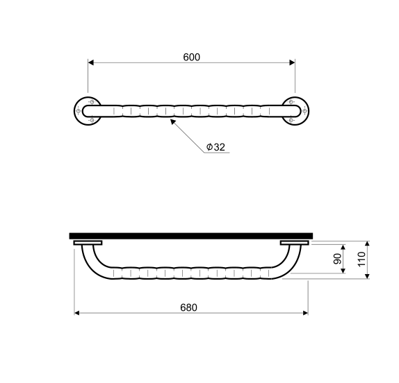 1) Поручень для ванної Kolo Lehnen Funktion 600 мм прямий матова поверхня