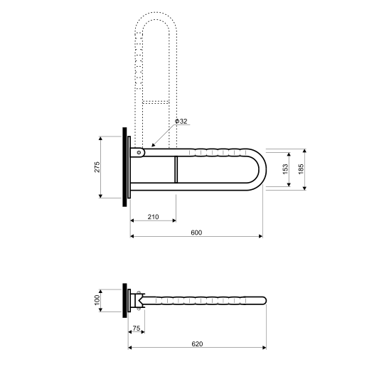 Поручень Kolo Lehnen Funktion відкидний 60 см матова поверхня