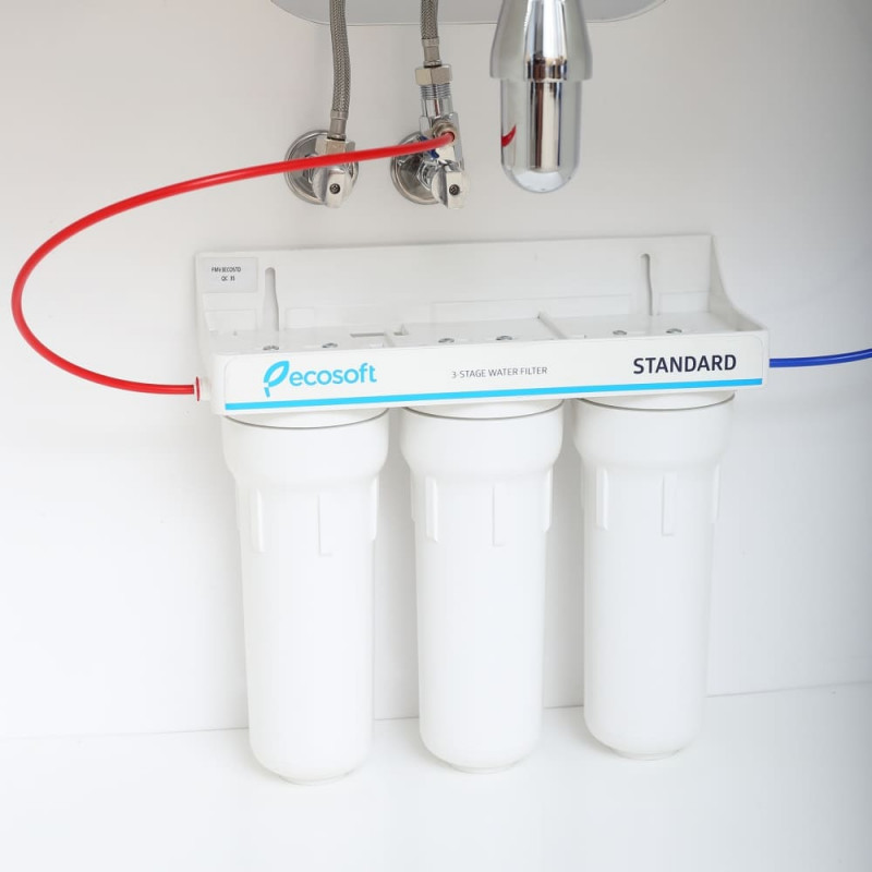 Трійний фільтр Ecosoft Standard призначений для квартири, де живесім'я з 3-4 осіб. Фільтр поєднує в собі високу якість та низьку вартість очищення води.