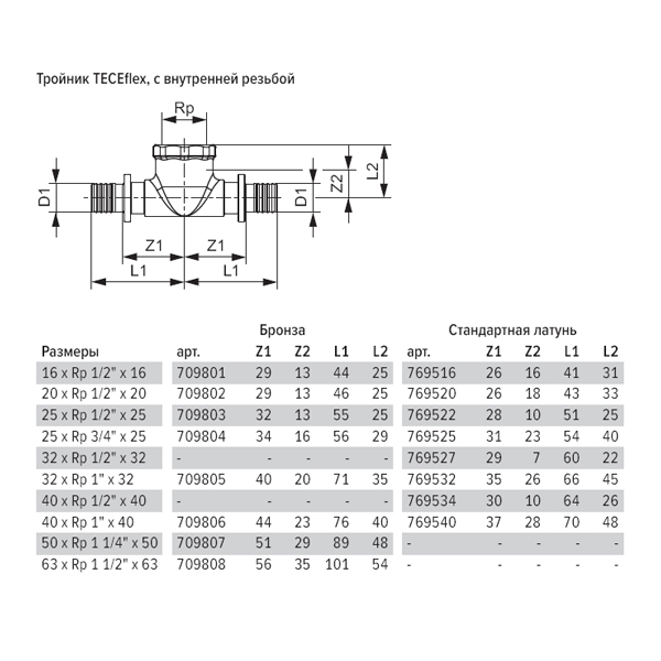 Фасонні частини латунних трійників TECEflex виконані зі спеціальної високоякісної латуні, що відповідає всім європейським гігієнічним і санітарним вимогам, стійкої до тривалого впливу агресивного середовища, які забезпечують захист від механічного руйнування і корозії, що гарантує довговічність використання трубопроводів різного призначення. Прес-фітинги TECEflex витримують тиск від 6 до 10 бар і температуруробочого середовища до 95 ° С.