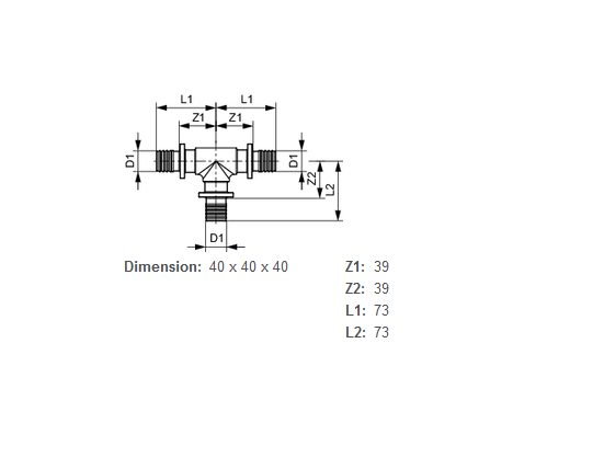Потрійний різьбовій фітінг TECE TECEflex 90 ° равнопроходной 40х40х40 латунь