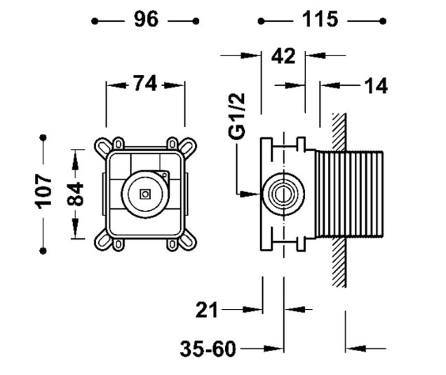 Прихована частина змішувача для душу Tres Rapid-Box видимі деталі матовий білий