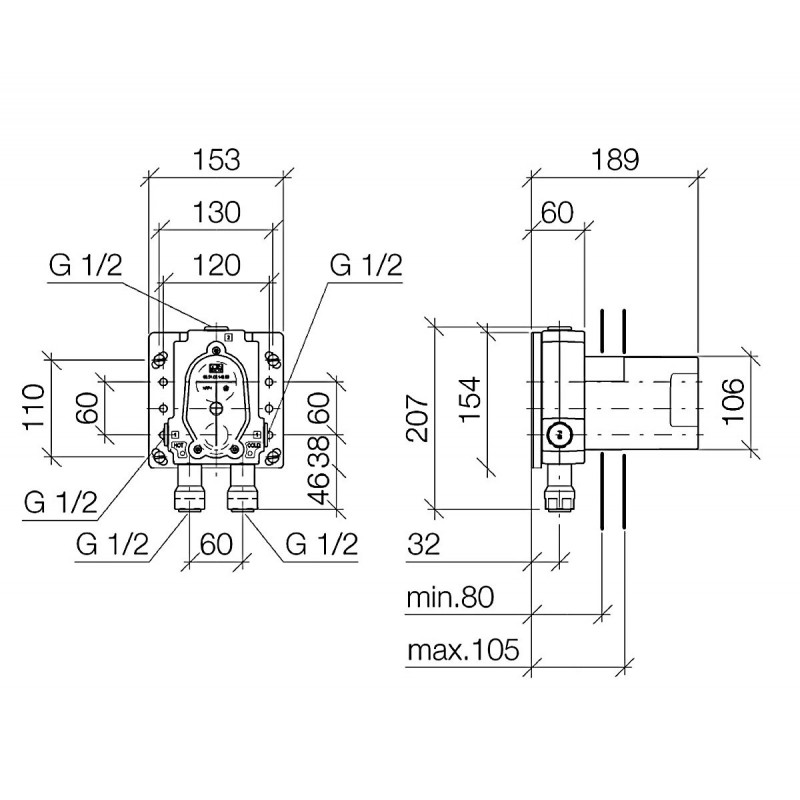 1) Прихована частина змішувача для ванни Dornbracht змішувач хром