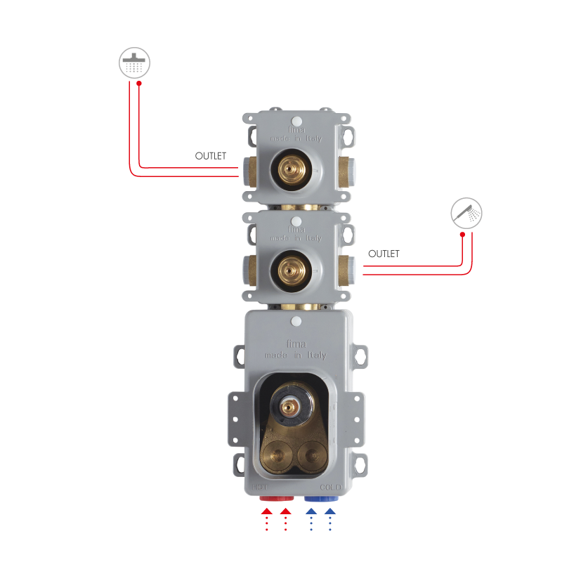 1) Прихована монтажна частина термостата для душа Fima Carlo Frattini 2 виходи