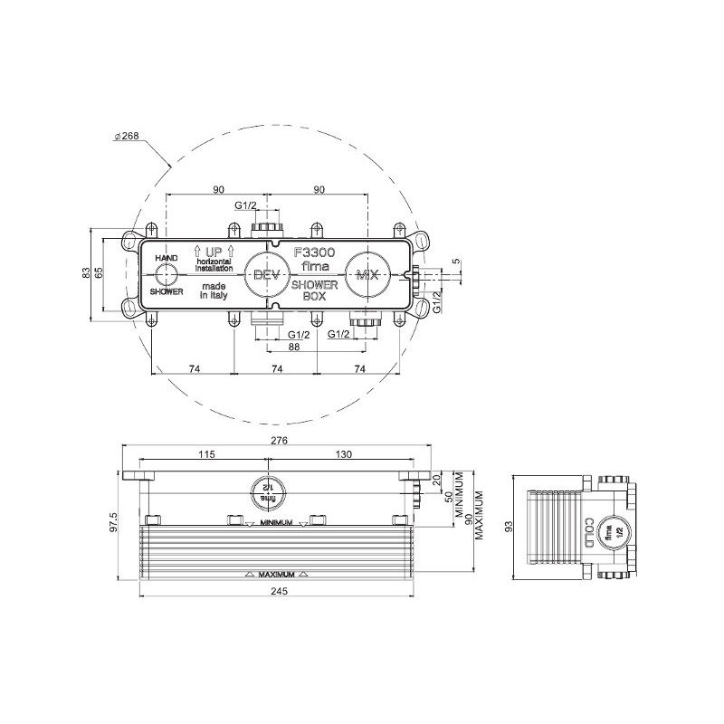 Прихована монтажна частина змішувача для душу Fima Carlo Frattini 2 виходи F3300