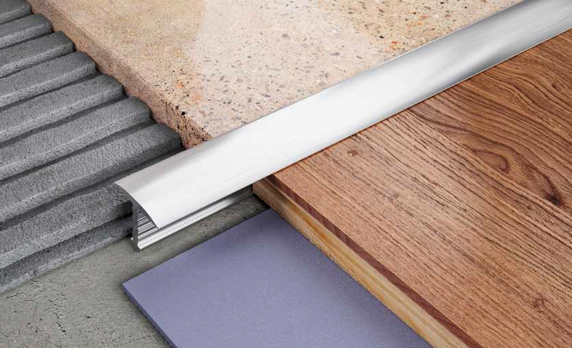 Профіль Т вузький естетично маскує з'єднання підлог на одному рівні. Плоска і вузька форма профілю забезпечує майже безпорогової маскування з'єднання підлог.