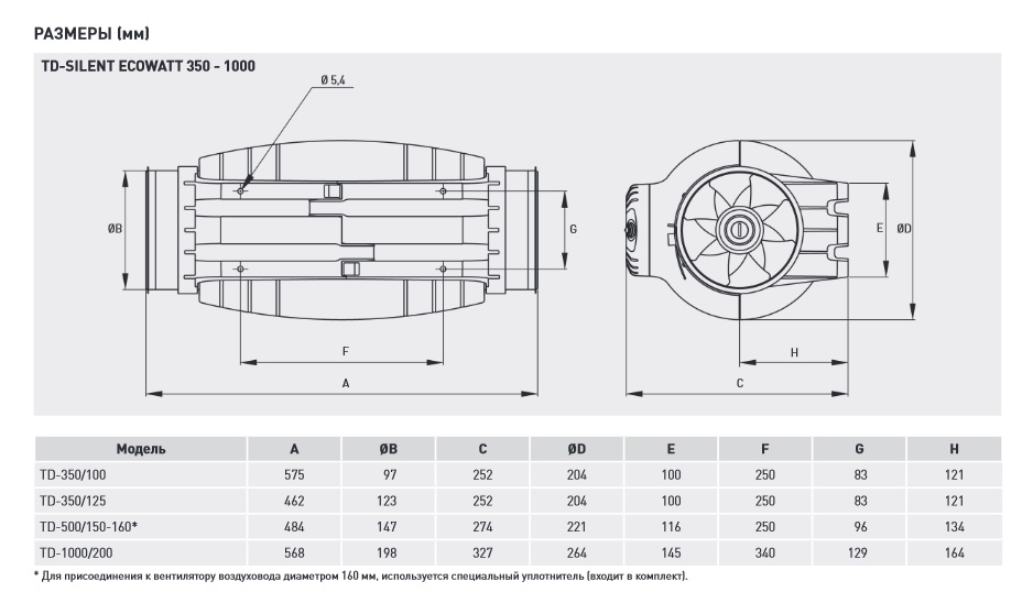 1) Промисловий вентилятор Soler&Palau TD-350/100-125 Silent Ecowatt канальний малошумний