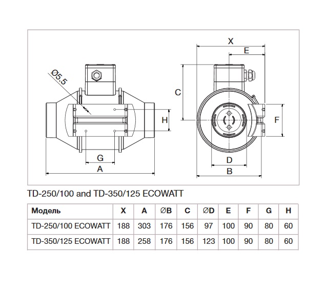 1) Промисловий вентилятор Soler & Palau TD-350/125 Ecowatt канальний круглого перетину
