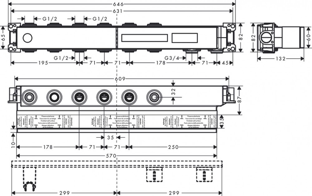 1) Прихована частина термостата Hansgrohe Axor Select 4 споживача