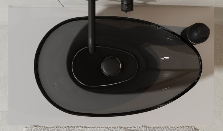 Раковина для ванної Besco Neya 60х35 см сифон клік-клак чорний мат ResiCast Carbon Grey #UMN-60-CGB