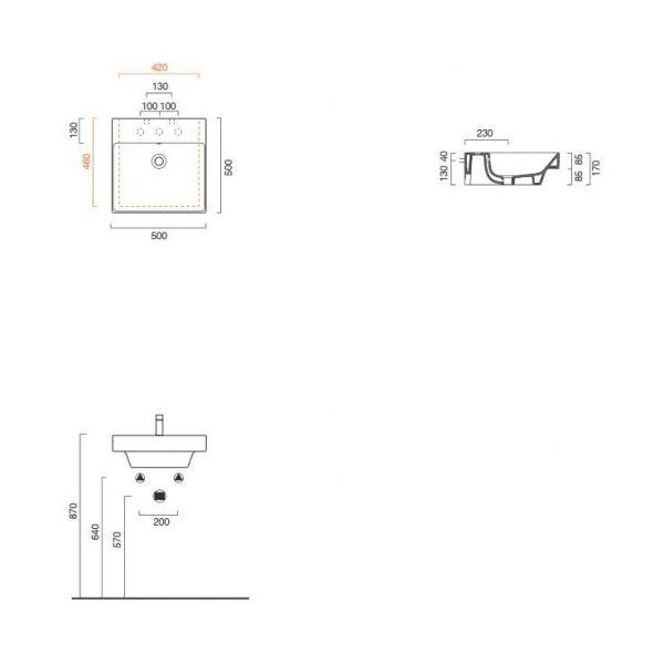 - Отвір під змішувач: 3 намічених отвори