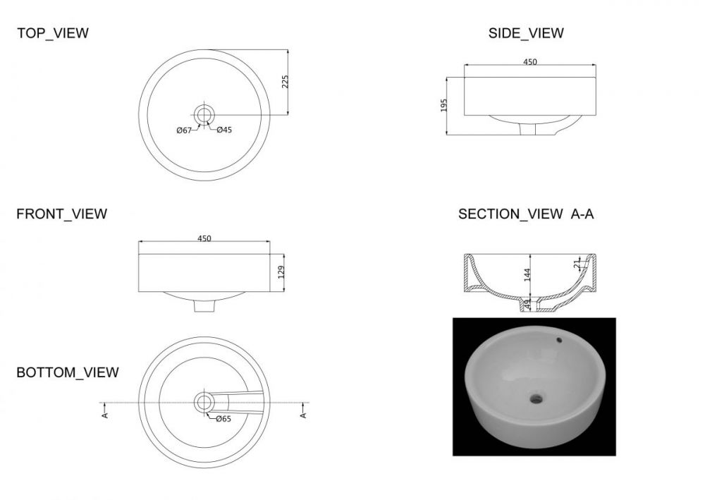 1) Раковина для ванної Devit Allround накладна 45х45 см санфаянс білий