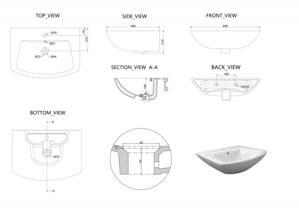 1) Раковина для ванної Devit Comfort New підвісна 65х49.5 см санфаянс білий