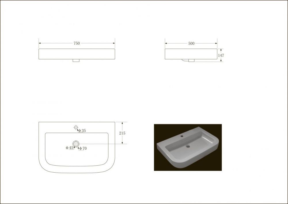 1) Раковина для ванної Devit Optima підвісна 75х50 см санфаянс білий