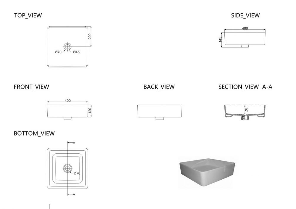 Габарити 400 × 400 × 145 мм