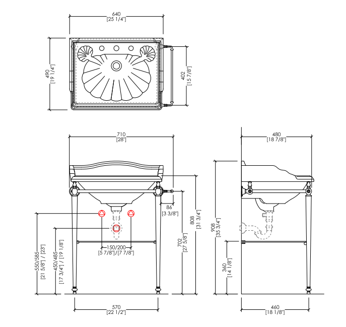 Раковина оригінальної форми Cambridge встановлюється за допомогою стильної металевої консолі. Атмосфера гарного стилю та елегантність інших часів, втілена в принципі трубчастої металевої конструкції, пом'якшена легкістю ніжок із обточеної конічної латуні, характеризує цю консоль у кольорі латунь. Також консоль укомплектована рушникоутримувачем та зручною скляною полицею.