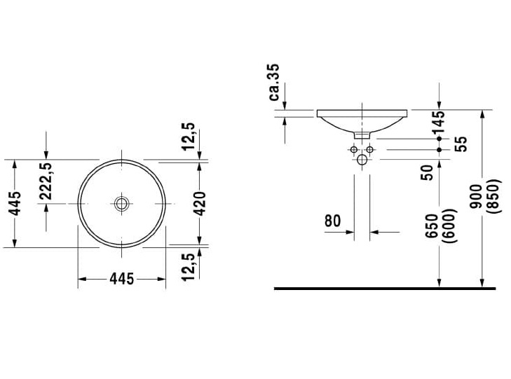 1) Раковина для ванної Duravit Architec під стільницю Ø44,5 см кераміка білий