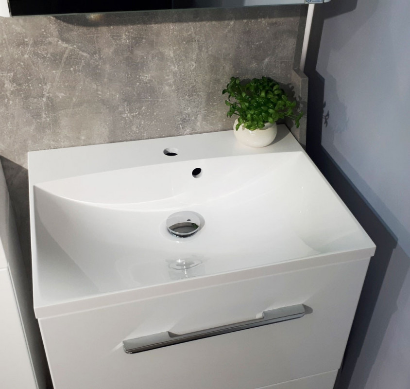 1) Раковина для ванної Fancy Marble Amelia 60х46 см штучний камінь білий матовий