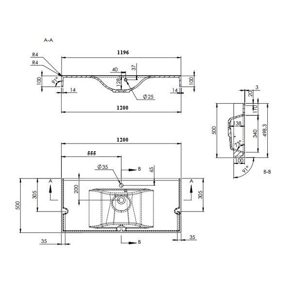 Раковина для ванної Fancy Marble Nadja 120х50 см штучний камінь білий матовий 0212103
