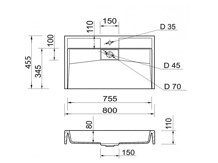 Раковина для ванної Fancy Marble Vitold 800 штучний камінь білий глянсовий 11408101
