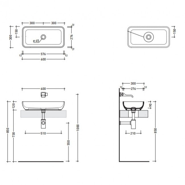 Раковина для ванної Flaminia Pass накладна білий PS60A