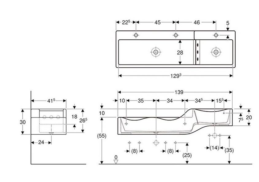 1) Раковина для ванної Geberit Bambini для дітей ліва 139х41,5 см Varicor альпін білий