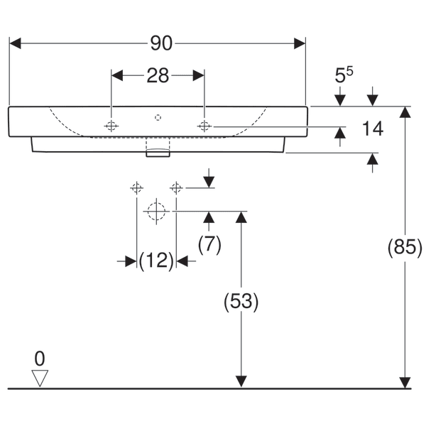 1) Раковина для ванної Geberit iCon 90 см санфарфор білий