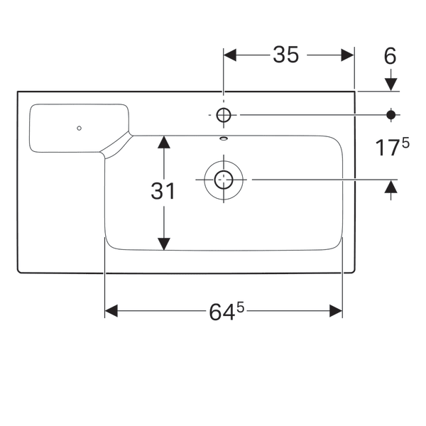 Раковина для ванної Geberit iCon з декоративною чашею зліва санфарфор білий