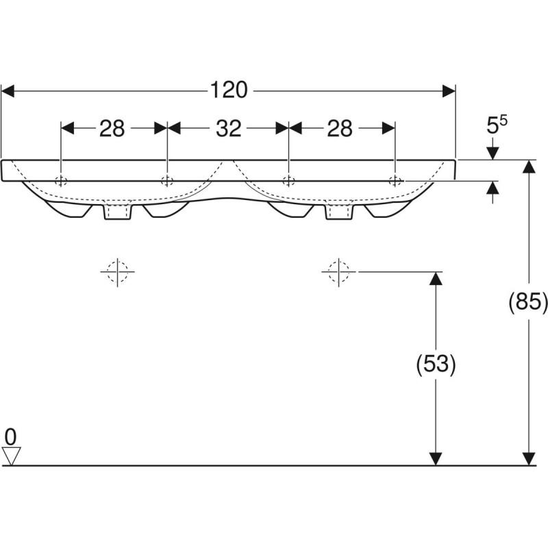 1) Раковина для ванної Geberit iCon Light 120x48 см подвійна без отворів під змішувач білий санфарфор