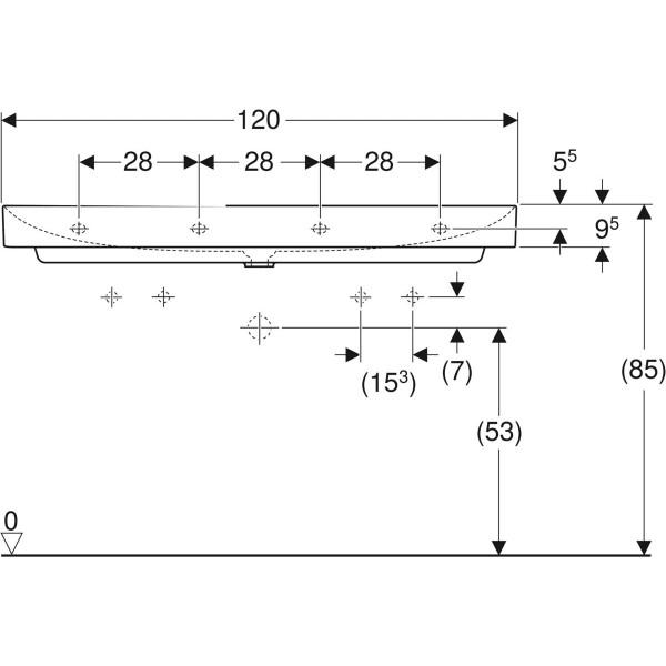 Умивальник Geberit One 120x48 см, з двома отворами під змішувач, без переливу, з покриттям KeraTect
