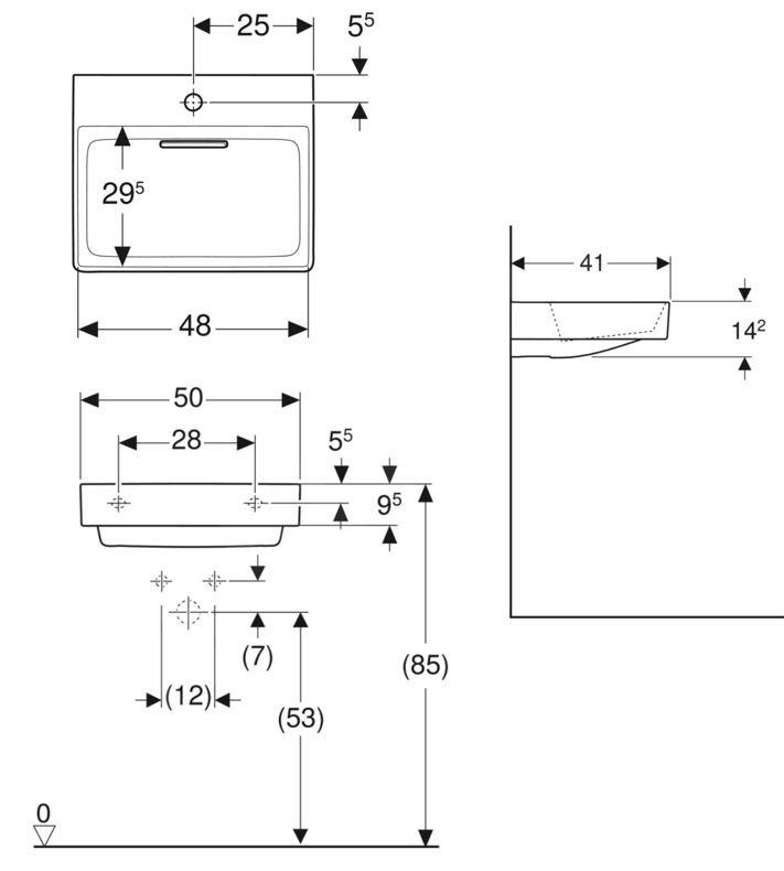 1) Раковина для ванної Geberit One 50x41 см білий санкераміка/KeraTect