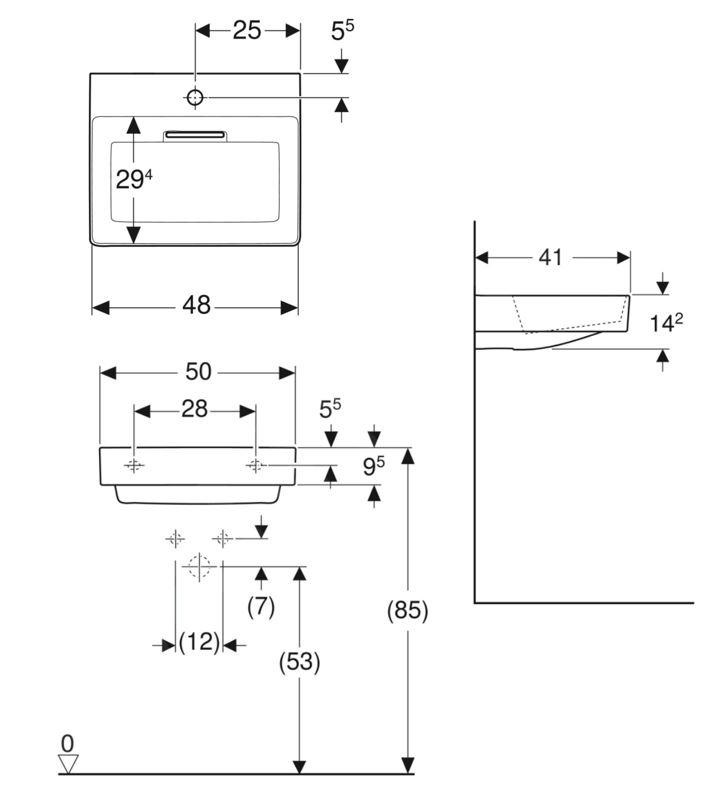 1) Раковина для ванної Geberit One 50x41 см санкераміка білий матовий