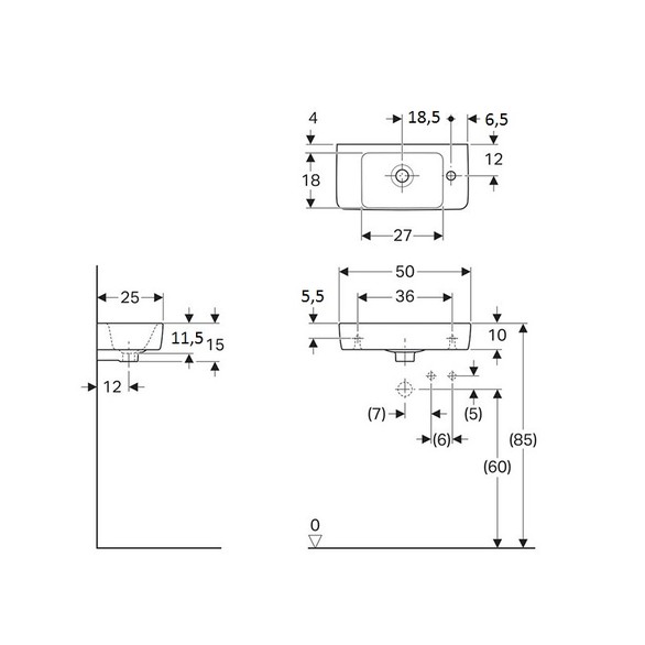 Раковина для ванної Geberit Selnova Compact 50x25 см отвір праворуч фарфор білий