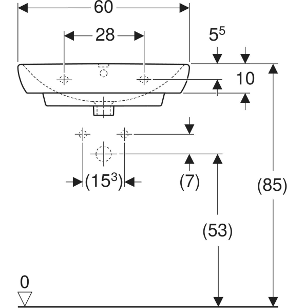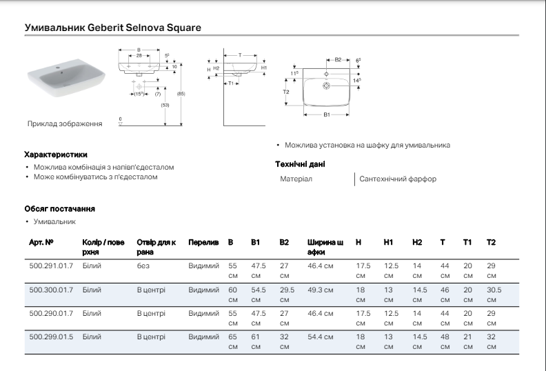 Роковина для ванної Geberit Selnova Square 60х46 см сантехнічний фарфор білий