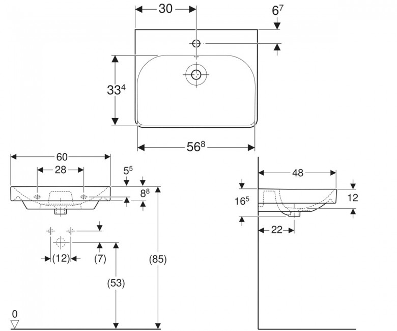 Раковина для ванної Geberit Smyle Square 60x48 см фарфор білий 500.229.01.1