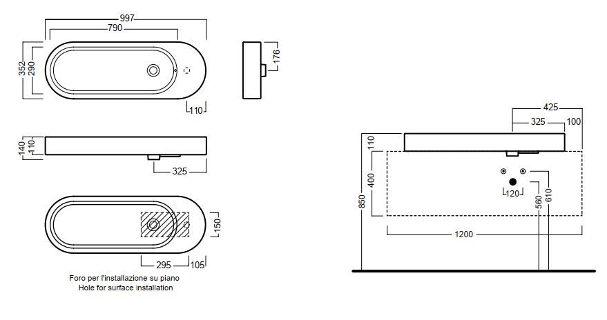 Раковина для ванної Hatria Area 100x35 см кераміка білий 00Y0W501