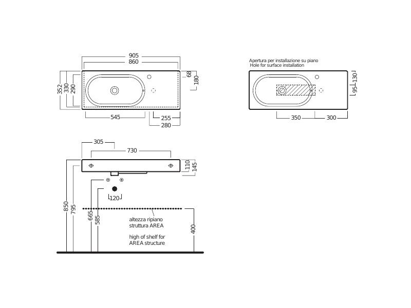 Раковина для ванної Hatria Area 90х35 см кераміка білий 00YXDL01
