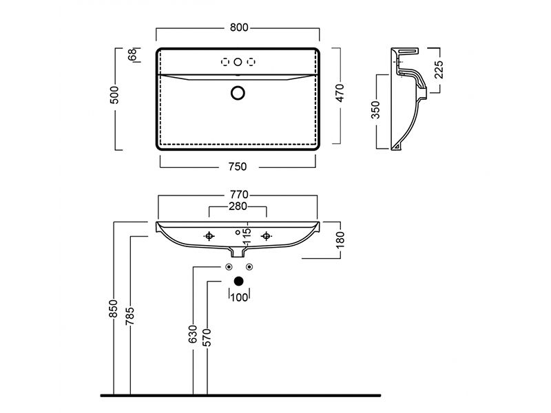 Раковина для ванної Hatria Canalgrande 80х50 см кераміка білий глянцевий 00Y1EK01