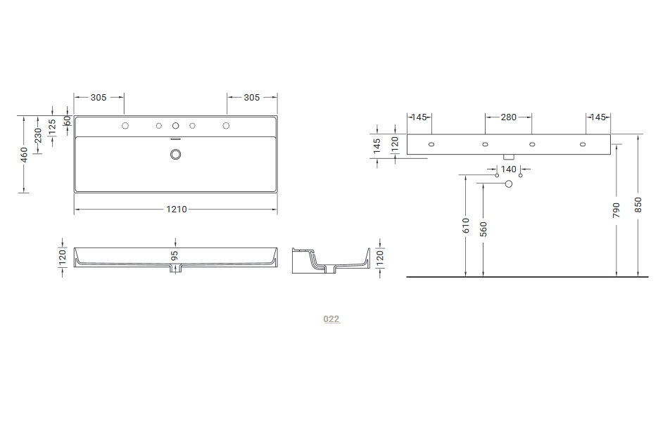 1) Раковина для ванної Hidra Faster Kiub 121х46 см санфаянс білий глянцевий