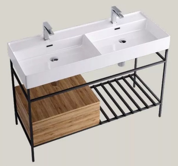 1) Раковина для ванної Hidra Faster Kiub 121х46 см санфаянс білий глянцевий