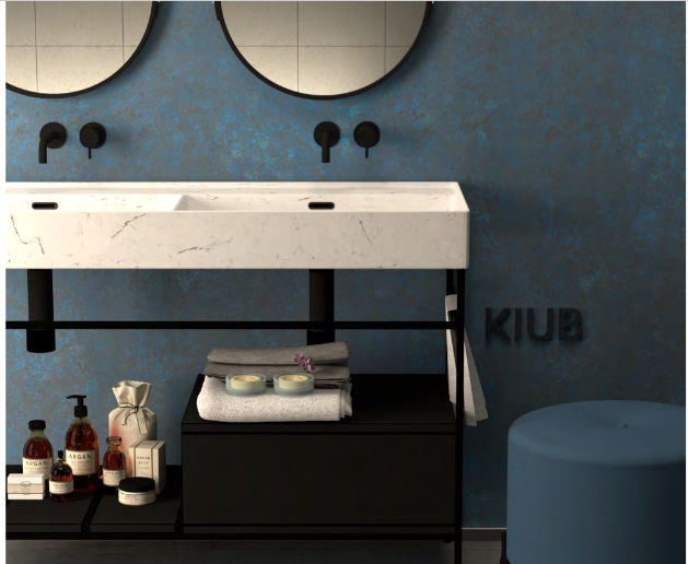 1) Раковина для ванної Hidra Faster Kiub 121х46 см санфаянс білий матовий мармур