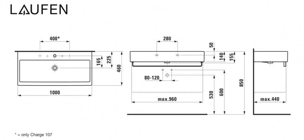 Раковина для ванної кімнати Laufen Living 100х46 см з 1 отвором кераміка білий H8184370001041