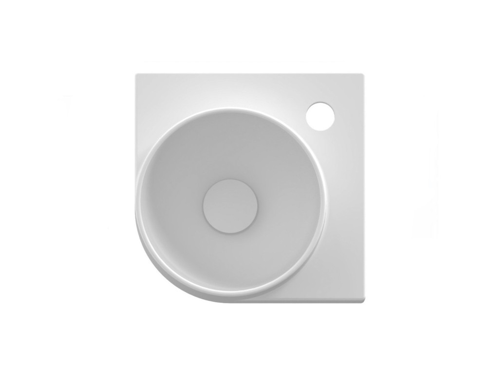 Кутовий керамічний двір мийки 280 С характеризується круглою формою та поглибленням для зберігання.