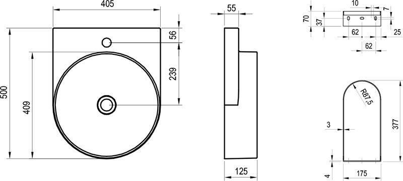 раковина призначена для встановлення на консолі Yard 400 і не може бути окремо підвішена до стіни.