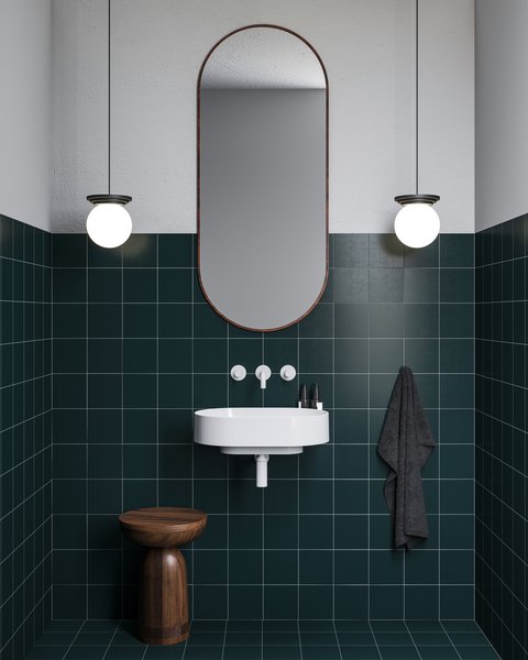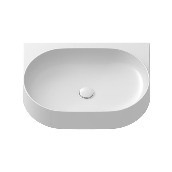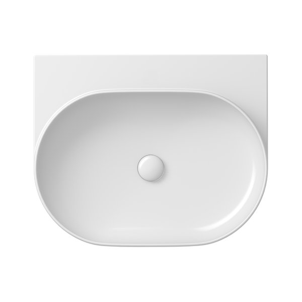 Овальна раковина доповнюється елементом дизайну у вигляді кронштейна білого кольору, чорного або нержавіючої сталі. Магія елегантності поєднує в один тон поєднання кронштейна, змішувача, сифона та зливу.