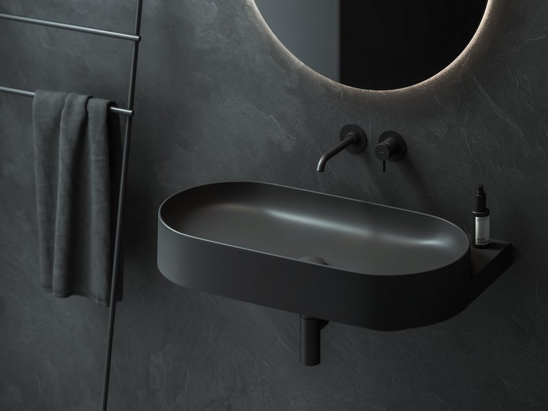 овальна мийка доповнюється елементом конструкції у вигляді білої кронштейна, чорної або нержавіючої сталі. Магія витонченості поєднує в собі один тон поєднання кронштейна, змішувача, сифона і злив.