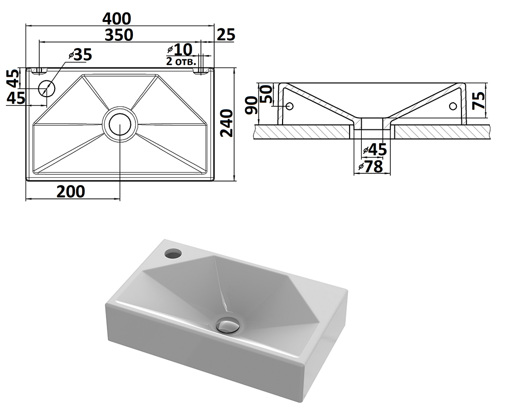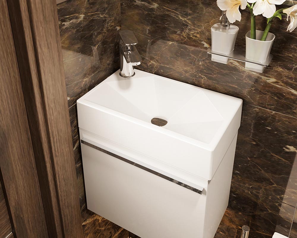 Умивальник «Меркурій» – це поєднання простоти та розкоші одночасно. Ця малогабаритна раковина стане відмінним доповненням навіть до найменшої ванної кімнати. Звичну, прямокутну форму умивальника, підкреслить його оригінальна чаша у вигляді граней.